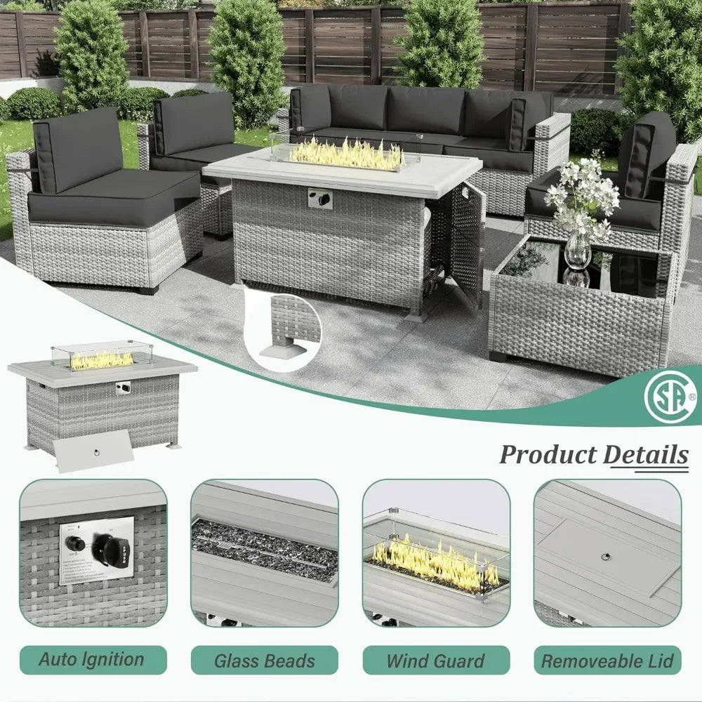 8-Piece Outdoor Patio Furniture Set with Fire Pit Table – Modular Wicker Conversation Set