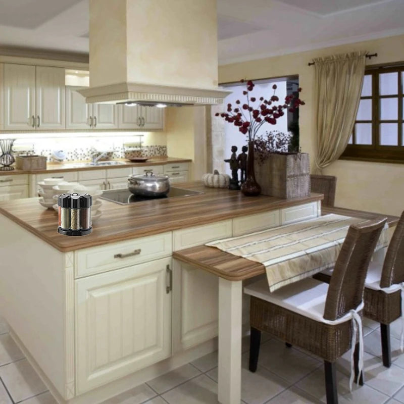 - Rotating Design: Easy to turn and access spices quickly.