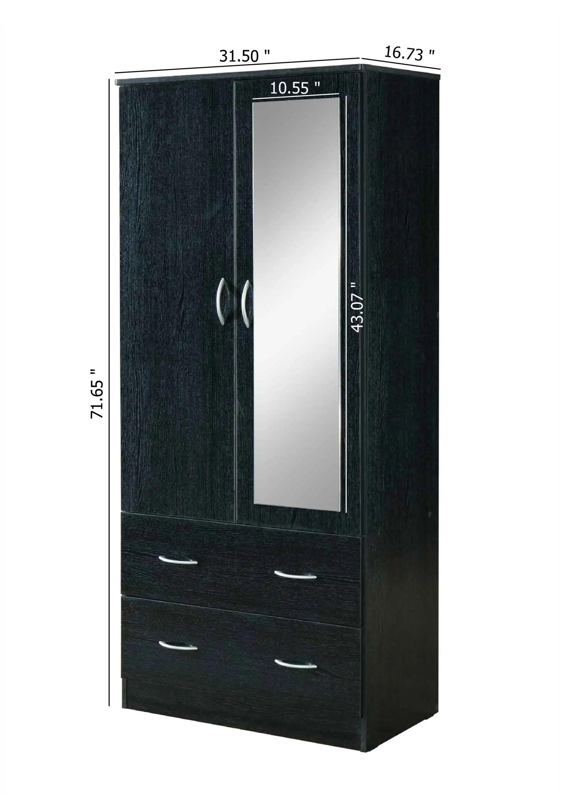 - Material: Wood with mirror, Dimensions: 100cm L x 50cm W x 180cm H, Storage: 2 Drawers, 1 Hanging Rod